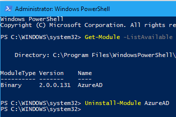 - If you get a version different than 2.0.0.98 (or later), you need to uninstall your current version with the command Uninstall-Module AzureAD