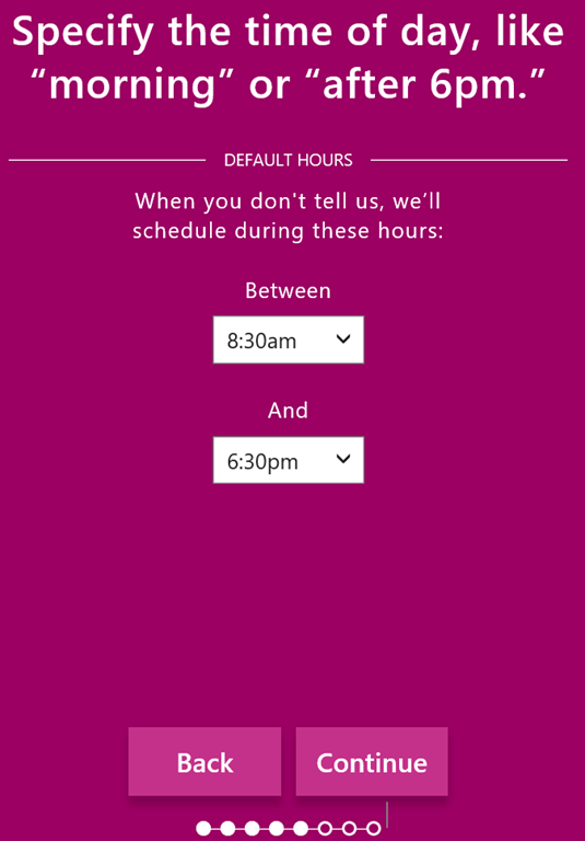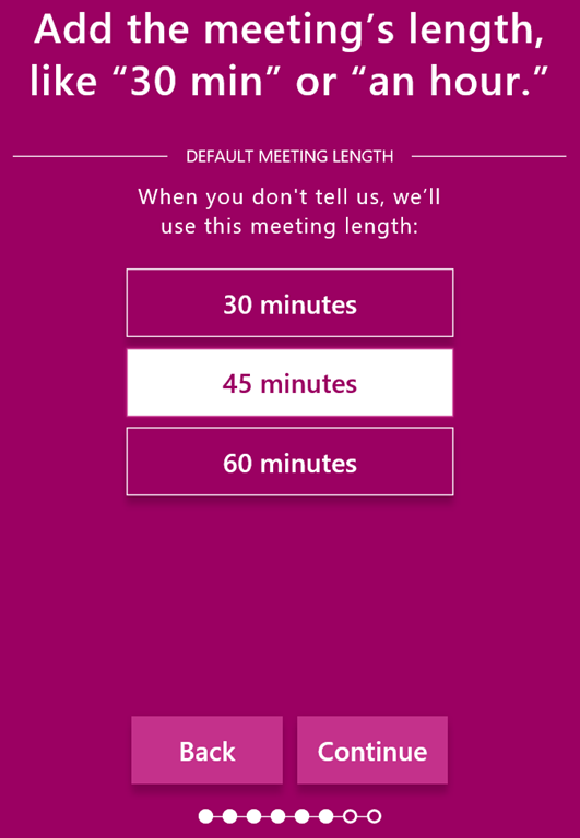 Then you have to answer few questions; like confirming your name, default ‘working’ hours – the period when Cortana will do the job for you, the meeting length and your time zone