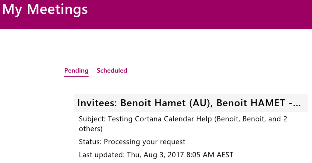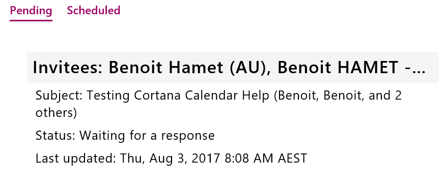 Once Cortana has found availability in your calendar, the status of your request is gong to Waiting for response