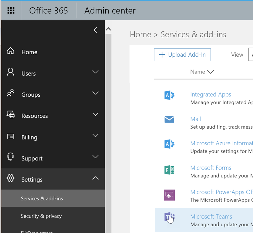 Select Microsoft Teams to access the properties and open the Apps section; you will note the display name may not be really clear sometime – hopefully this will be sorted soon
