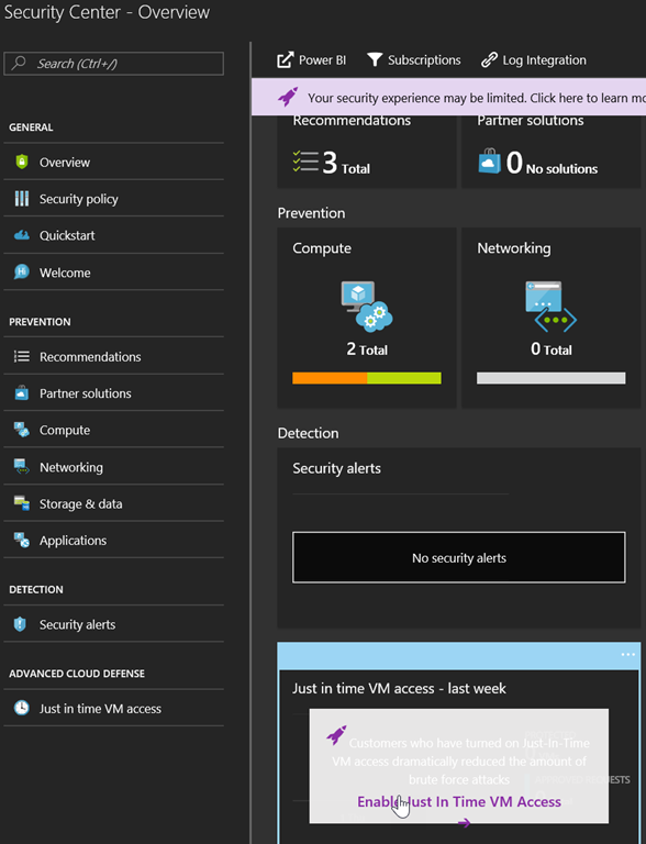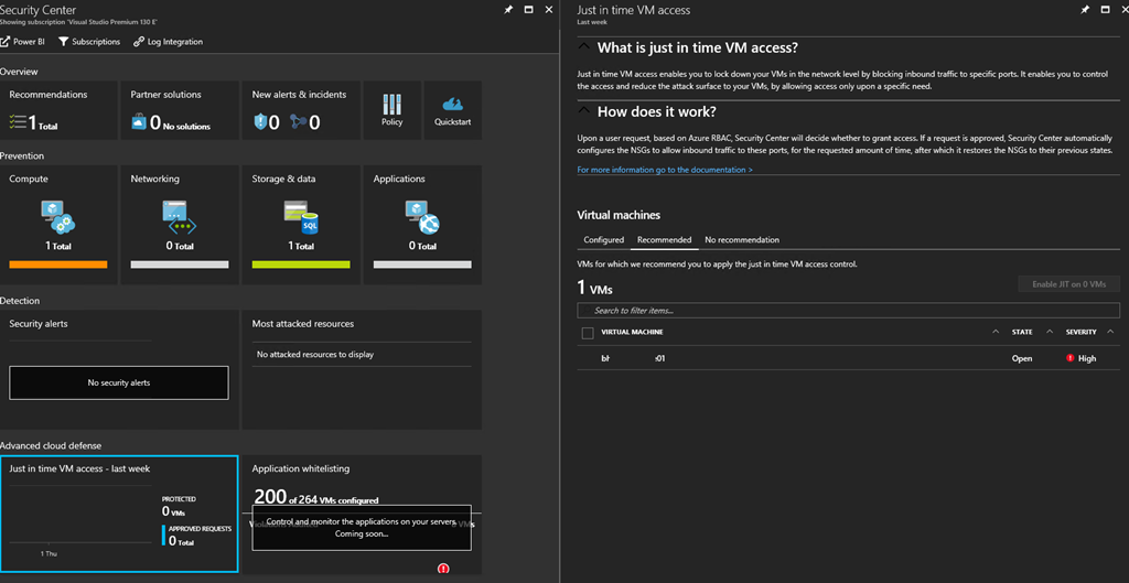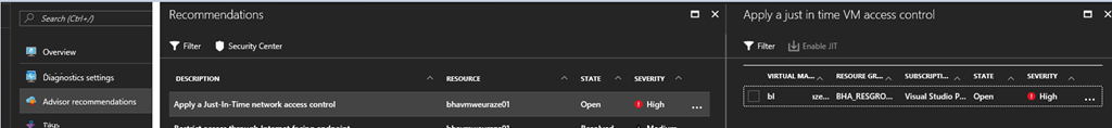 NOTE you will also get the JIT access activation recommendation when you go to the virtual machine Advisor Recommendations