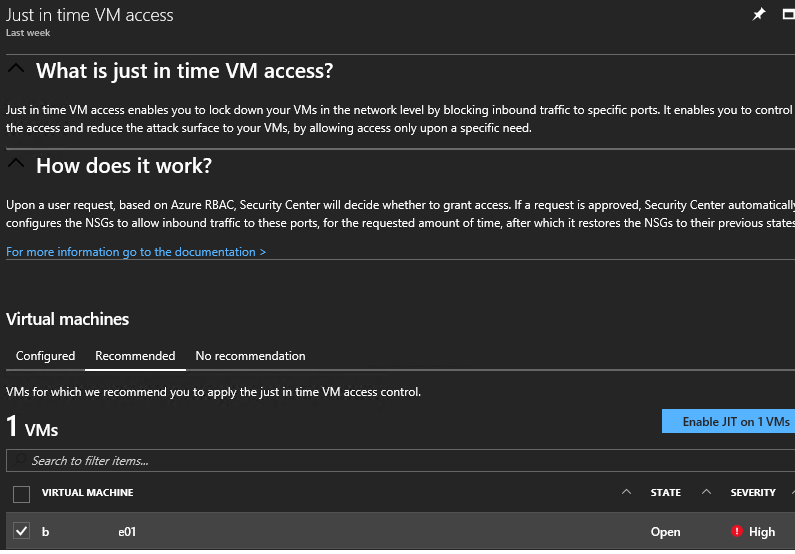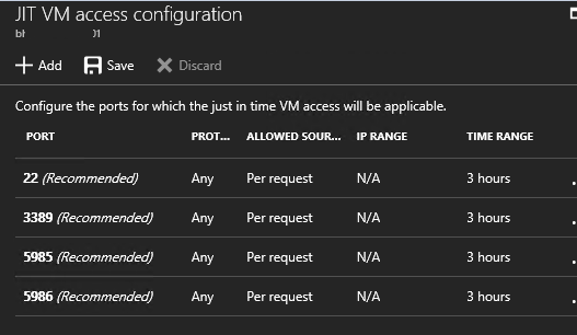 When activating the JIT Access, you have to define to which port the functionality will apply; in case of you are using other ports to manage the VM and to not ‘block’ legitimate access (like when hosting a web server); there is already a list of predefined known management ports