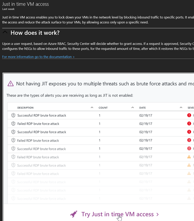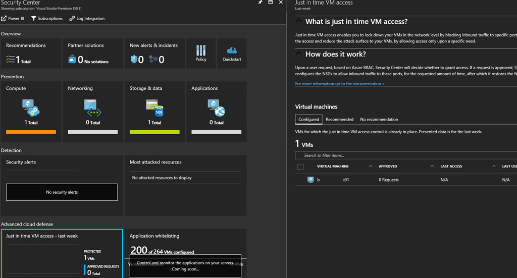 Once upgraded, the Just In Time VM Access section on the Security Center will show all virtual machine protected by JIT Access.