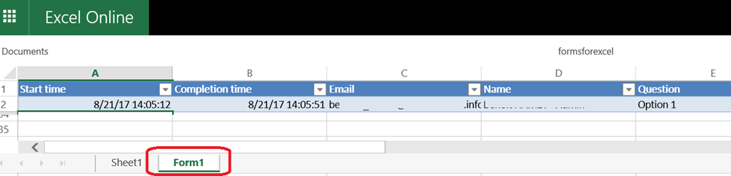 Then you can view the results in both Forms (as for any other form) and in the Excel file – NOTE a dedicated tab has been created in the Excel file