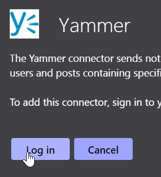 Select Yammer (or any other connector you want to use, but as this post is about integrating Yammer, I’m choosing Yammer