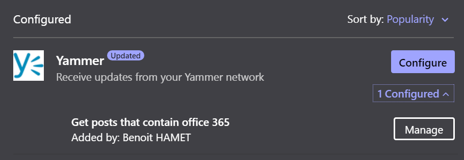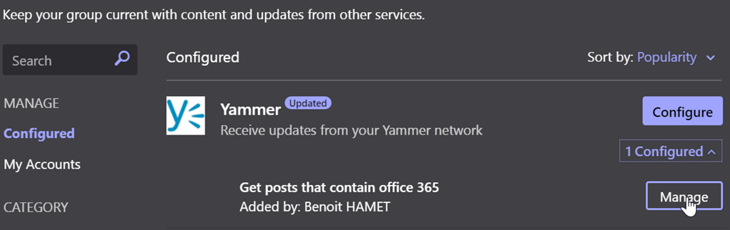 While Microsoft Teams, the new collaborative tool coming with Office 365, evolves quickly, here is how to integrate Yammer with Teams to get the Yammer feed available.