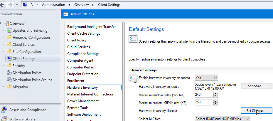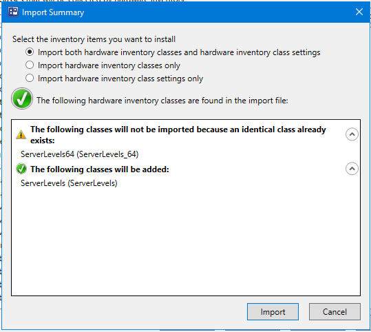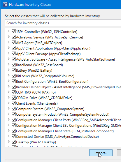 - Using SCCM console import your custom MOF file to the Hardware Inventory agent