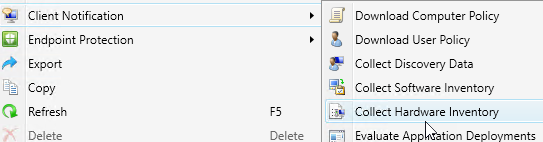 - Wait for the SCCM client to get the updated configuration settings and you will be able to create a device collection identifying Windows Core server only or use the Client Notification to initiate the hardware inventory