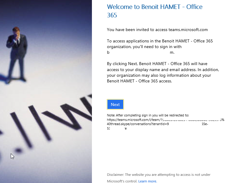 And then he can access the by clicking the Open Microsoft Teams; this is a mandatory step to get the guest access added to his Microsoft Teams application