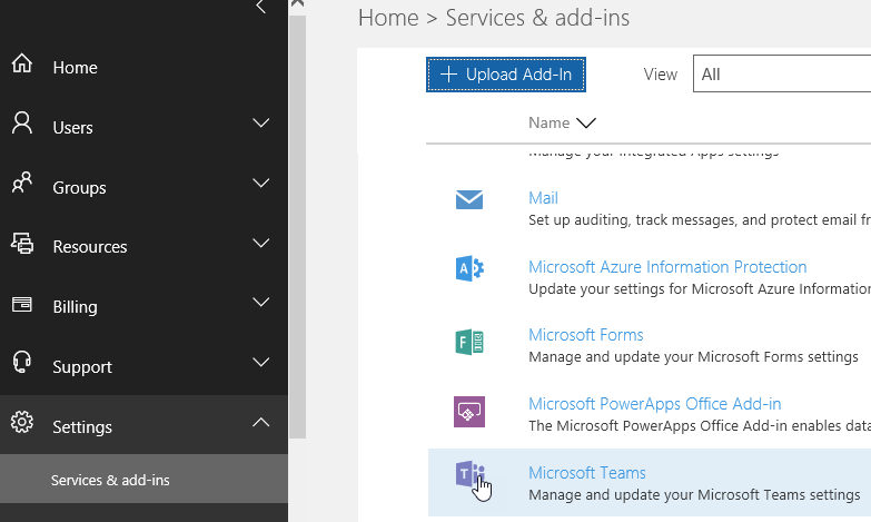 To block Teams guest access, logon to your Office 365 administration portal and reach the Settings\Services & add-ins section to open the Microsoft Teams options