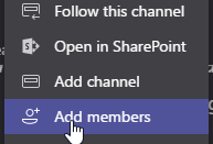 To add a guest to a Teams, just use the Add members from the team/channel menu
