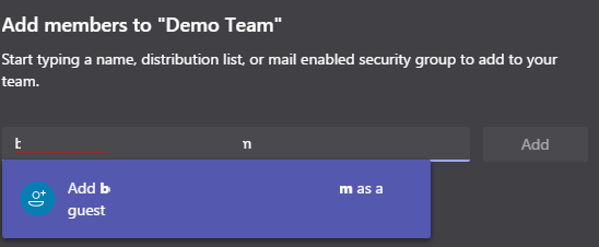 Type the email address of the guest to be added and then click Add. Ensure you click on the purple message to add the user