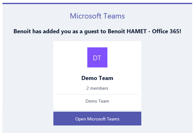 Then the guest will receive a notification he has been added to a Microsoft Teams