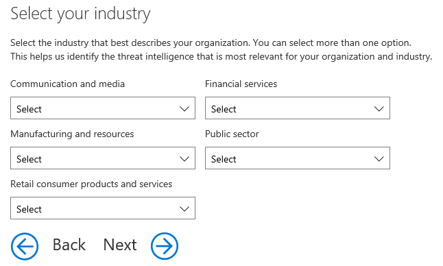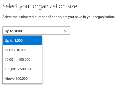 Next you define the size of your organization and your industry