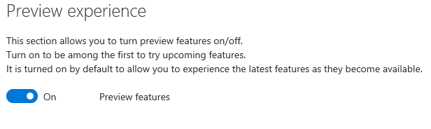 You can choose to enable preview experience, allowing to get first hand on what’s new is coming