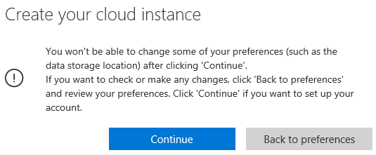 You have then to define where the data will be stored. This location can not be changed.