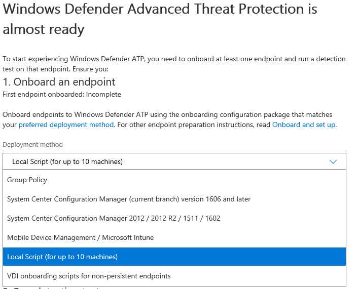 Once the instance is provisioned you can immediately download a packaged script to onboard at least one device. To start using ATP, you need to have at least one device on boarded.
