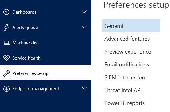 On the ATP Portal, go to the Preferences setup section to update some settings you have completed during the setup (remember the data location can not be changed) and configure additional settings like System Information and Event Management (SIEM), email notifications or Power BI integration for reporting