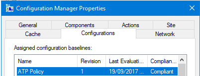 omputer Policy. You can check if the policy has been deployed by opening the SCCM client and check the Configurations tab to see if the ATP policy is there. You can then also force the refresh by running the Evaluate function.