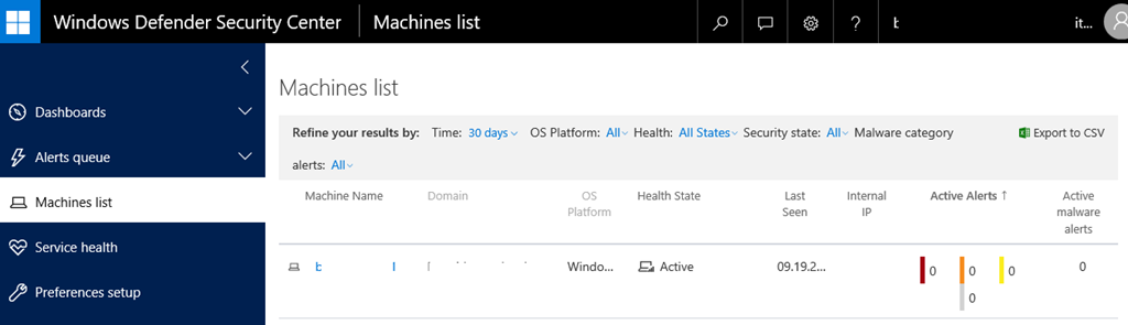 And in the mean time you can also use your SCCM console to check the client state. Go to the Monitoring workspace and open the Security\Windows Defender Status section