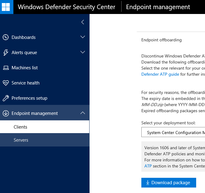 If you need to offboard a device (or your organization), you just need to download the offboarding package from the ATP portal.