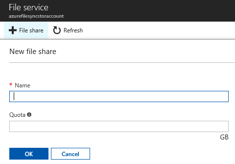 Then click on the File Share button and name it – optionally you can set a quota