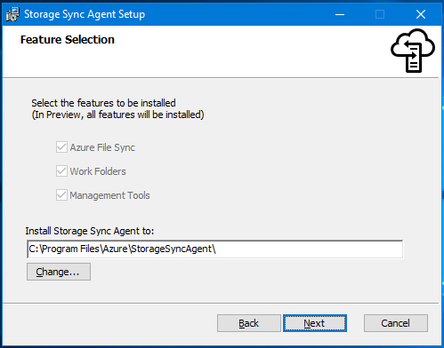 NOTE during the preview all available features (Azure File Sync, Work Folders and Management Tool) will be installed