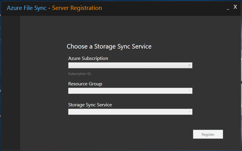 Then you select the appropriate subscription, resource group and storage sync service