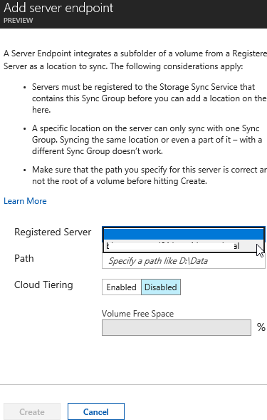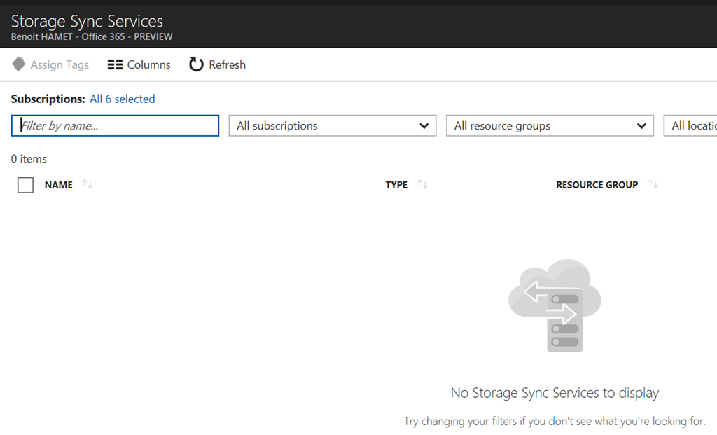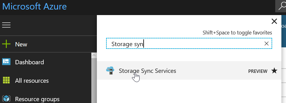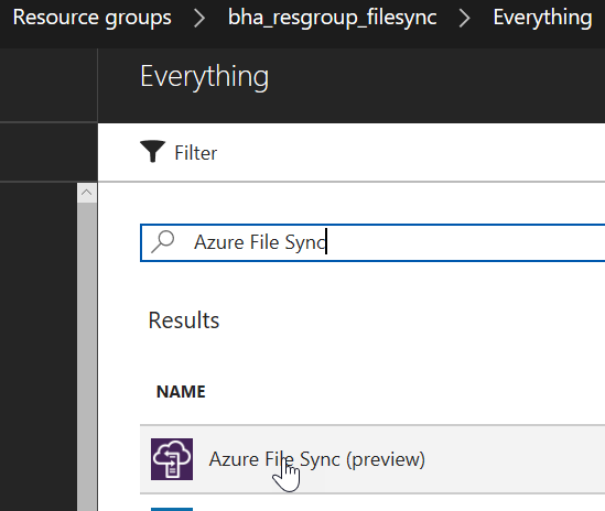 You can try this new feature from https://aka.ms/deployAzureFileSync or by searching Storage Sync Services – at this stage (probably because this is a preview, you do not have the ability to create a synchronization from the Storage Sync