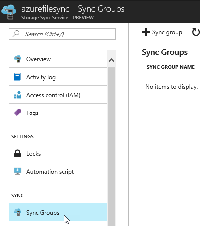 To create a sync group, open the Azure File Sync\Sync Groups blade