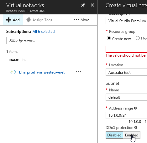 Enable DDoS Protection when creating a new VNet