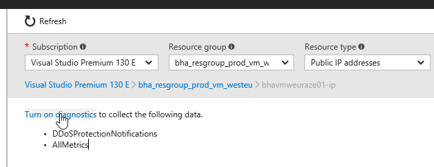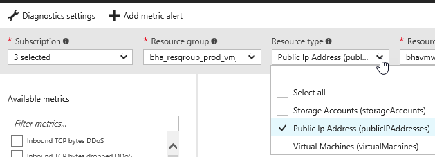 Select the subscription, resource group and public IP you want to get notified when under attack