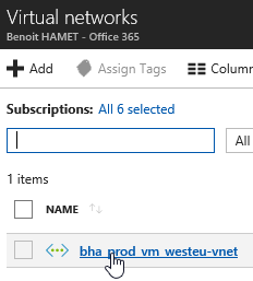 From the Azure Portal, search for Virtual Networks (or go directly if you have pinned it on your quick launch [Favorites])