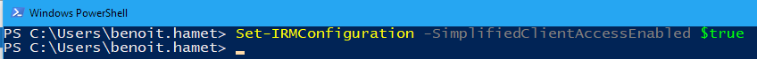 Set-IRMConfiguration -SimplifiedClientAccessEnabled $true
