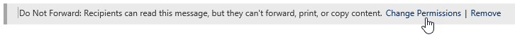 And when you click on Protect you will get the notification bar with Do not forward set and the option to change the permissions