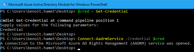 Connect-AadrmService -Credential $cred
