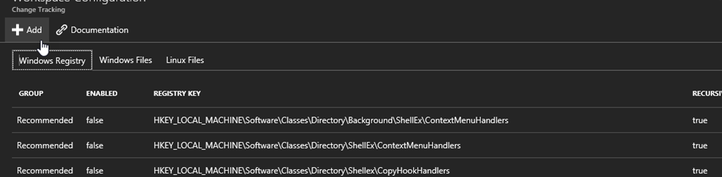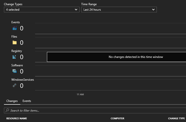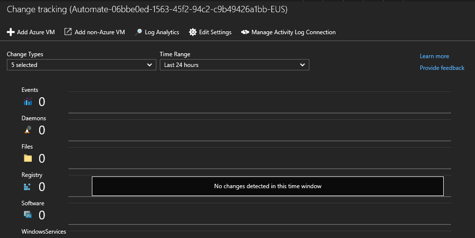 Once enabled the Change tracking solution will monitor any actions occurring at the events, registry, files, software or services level.