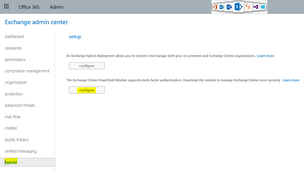 To do so, you need to download and install the Exchange Online PowerShell module from the Exchange Online ECP- Hybrid section