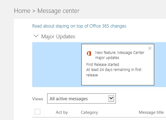 Now, you also have a specific notification in the Message Center to tell you about when a major update will start reaching your tenant.