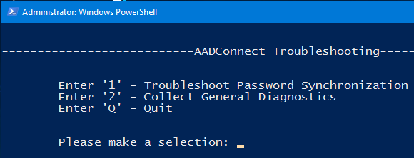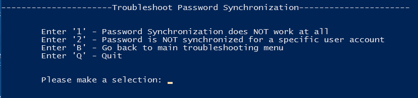 When starting the troubleshooting tool, a PowerShell prompt is launched, then you have to define what you want to troubleshoot: