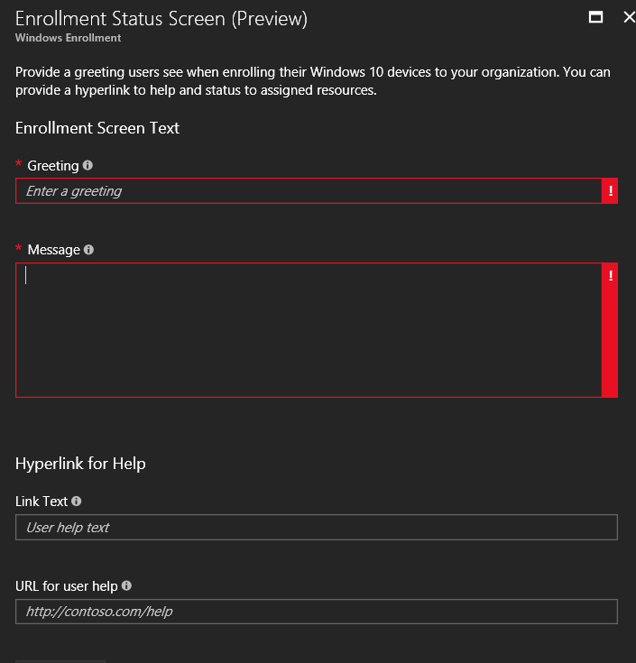 With Windows 10 build 1709 (Fall Creators Update) and Intune, you can now provide details to the end-user while enrolling the device.