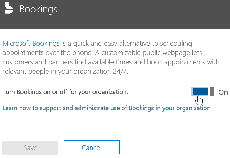 Enabling the Booking service at your tenant level does not means all you user’s calendar will be accessible; your end-users will then enable and configure their calendar for booking (see below)