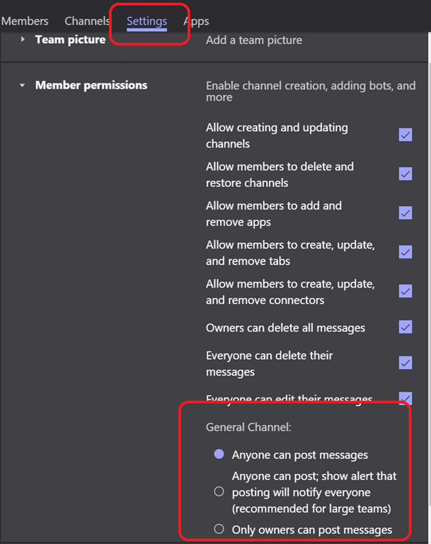 To define this setting, you need to go (as the Team owner) to the Team settings (Manage Team) and then access the Permissions options