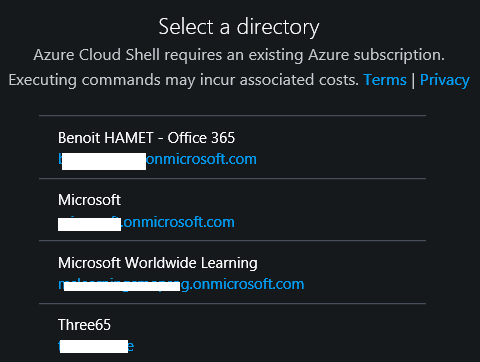If you have access to multiple Azure directory, you can then choose which one you want to connect to.