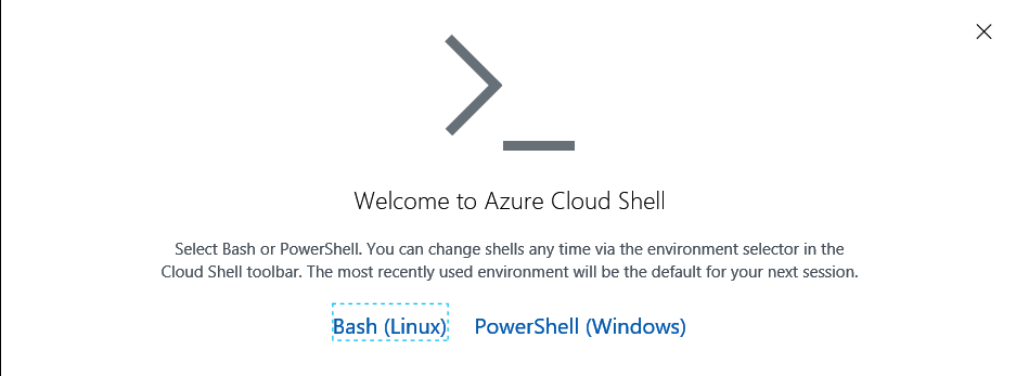 If you already has a storage account configured, you will be requested which language (Bash or PowerShell) you want to use