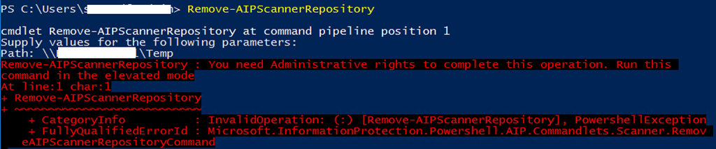 - All management operation for AIP Scanner are done with PowerShell. That said you need to logon as the service account you used to configure AIP Scanner, otherwise you will get a login failed for the current user