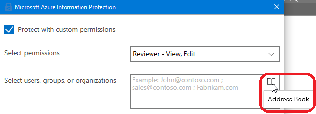 - If you use AIP with your Office applications, you now use your Outlook Address Book to set the custom permissions. You will need to have Outlook installed, configured and running to take advantage of this address book use