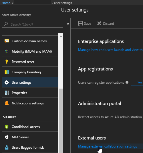 In preview mode you had to use PowerShell to setup and manage the external collaboration policy, with the GA you can now use the Azure Administration portal, making things a little bit easier.