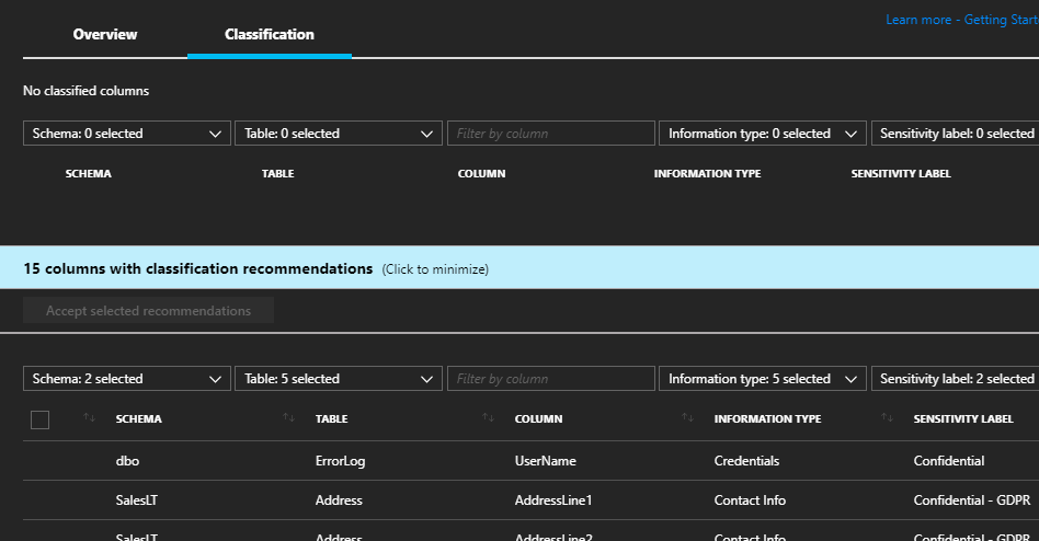 After the activation you may have a notification to tells you the system has automatically already identified some classification; just click on the notification bar to access the findings and take the appropriate actions by selecting the recommendation(s) and then clicking on the Accept selected recommendations
