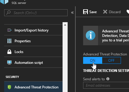 Then access the SQL database you want to Advanced Threat Protection configuration blade to turn on the feature